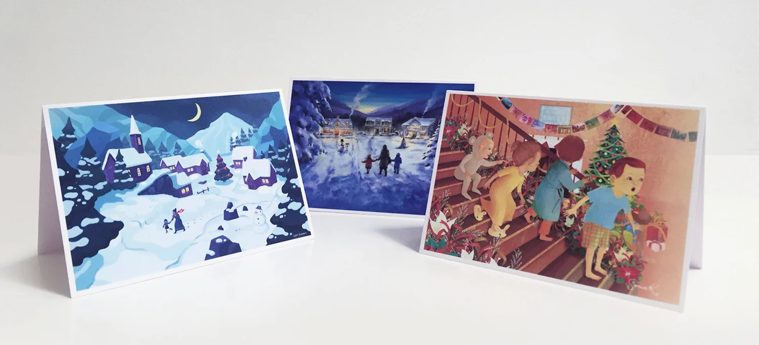 We created a range of beautifully-illustrated cards featuring typical Christmas imagery: cosy homes, excited children and winter wonderlands.